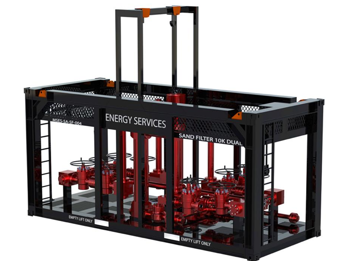 At MSES, our personnel are at the heart of our success. With extensive experience in the field, they execute every job with the utmost focus on safety, efficiency, and accuracy, ensuring the reliable delivery of well test data. Additionally, our Sand Management System has proven its effectiveness under the harshest conditions in Saudi fields, consistently delivering optimal performance even in demanding environments. We are committed to providing high-quality, reliable, and innovative solutions that meet the needs of the oil and gas industry. Our 10,000 Psi Twin Pot Sand Filter Package is engineered to enhance well test operations by effectively removing drilling, formation, and proppant-based solids from wellbore fluids. This filtration system minimizes the risk of damage to downstream pressure control and measuring equipment, which is critical for maintaining operational integrity and safety during drilling activities. The design emphasizes reliability and efficiency, ensuring that the filter operates optimally under high-pressure conditions.